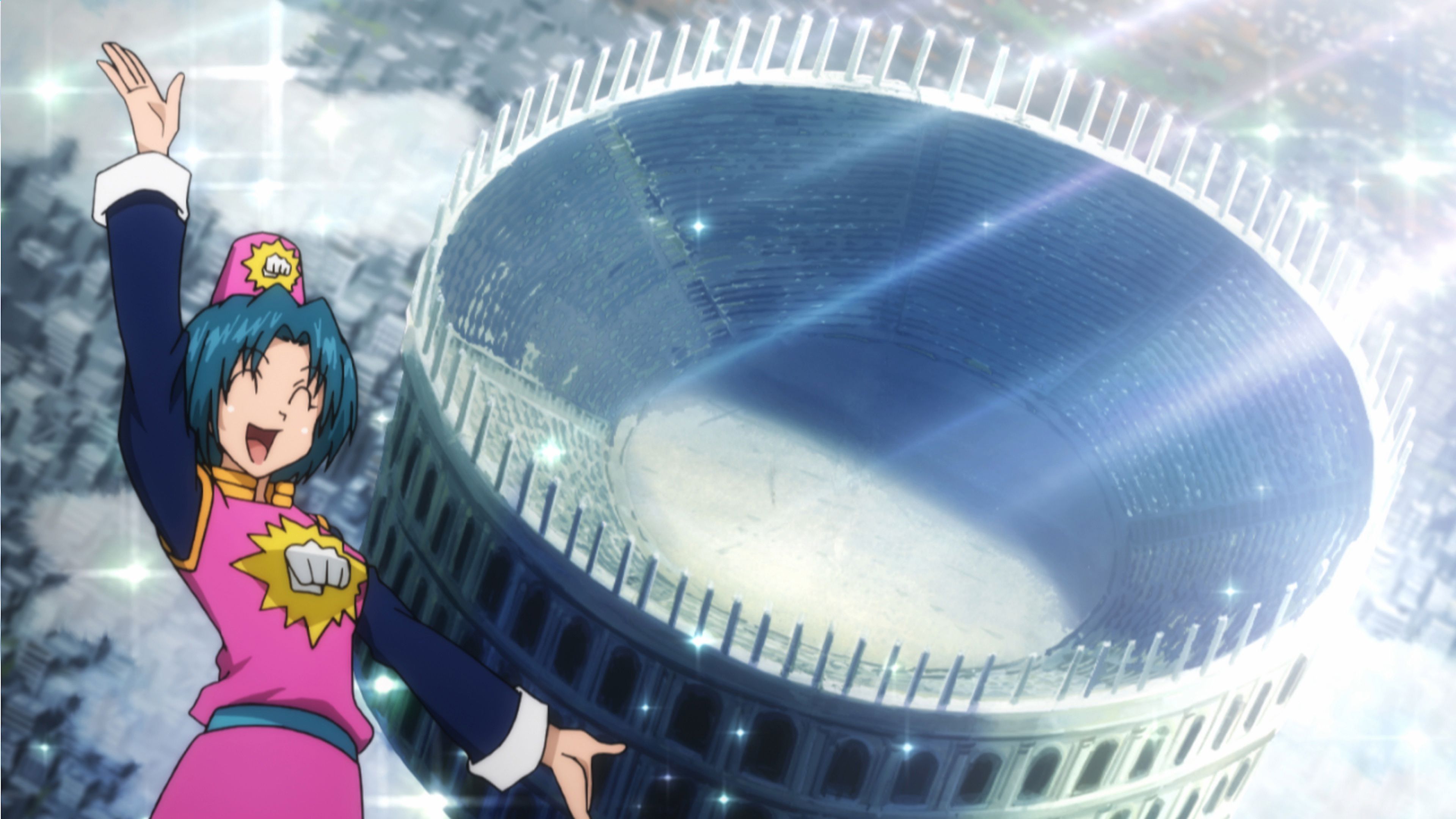 Gon and Killua go to the Heaven's Arena, a place where they can train and earn money by fighting other opponents. Gon and Killua quickly advance to the 150th floor, defeating their opponents with one hit.