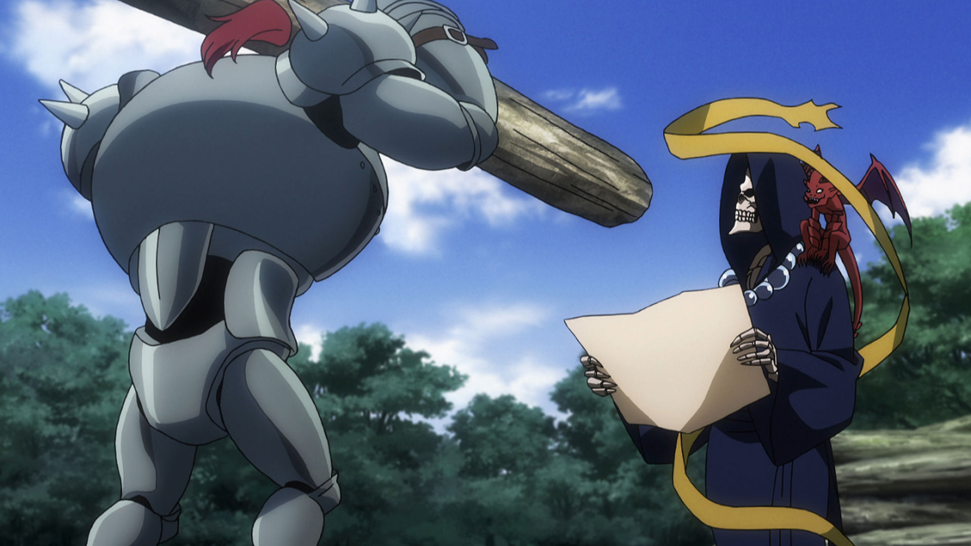 The guardsmen and adventurers face a daunting array of demons until Momon arrives and takes charge. Brain once again comes face to face with Shalltear. While Evileye is occupied, Demiurge reveals his plan to Ains.