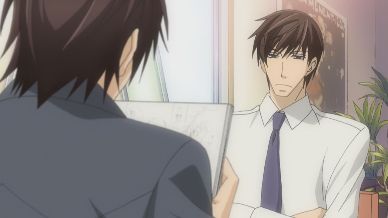 While denying his feelings for Takano, Onodera nevertheless worries that his boss seems too close with Marukawa's sales chief Yokozawa Takafumi. Trying to avoid Takano, Onodera is forced to bring a storyboard to his apartment for approval. Once there, Takano makes romantic overtures to Onodera, who resists them. Escaping from the apartment, Onodera finds a suspicious Yokozawa standing in the doorway.